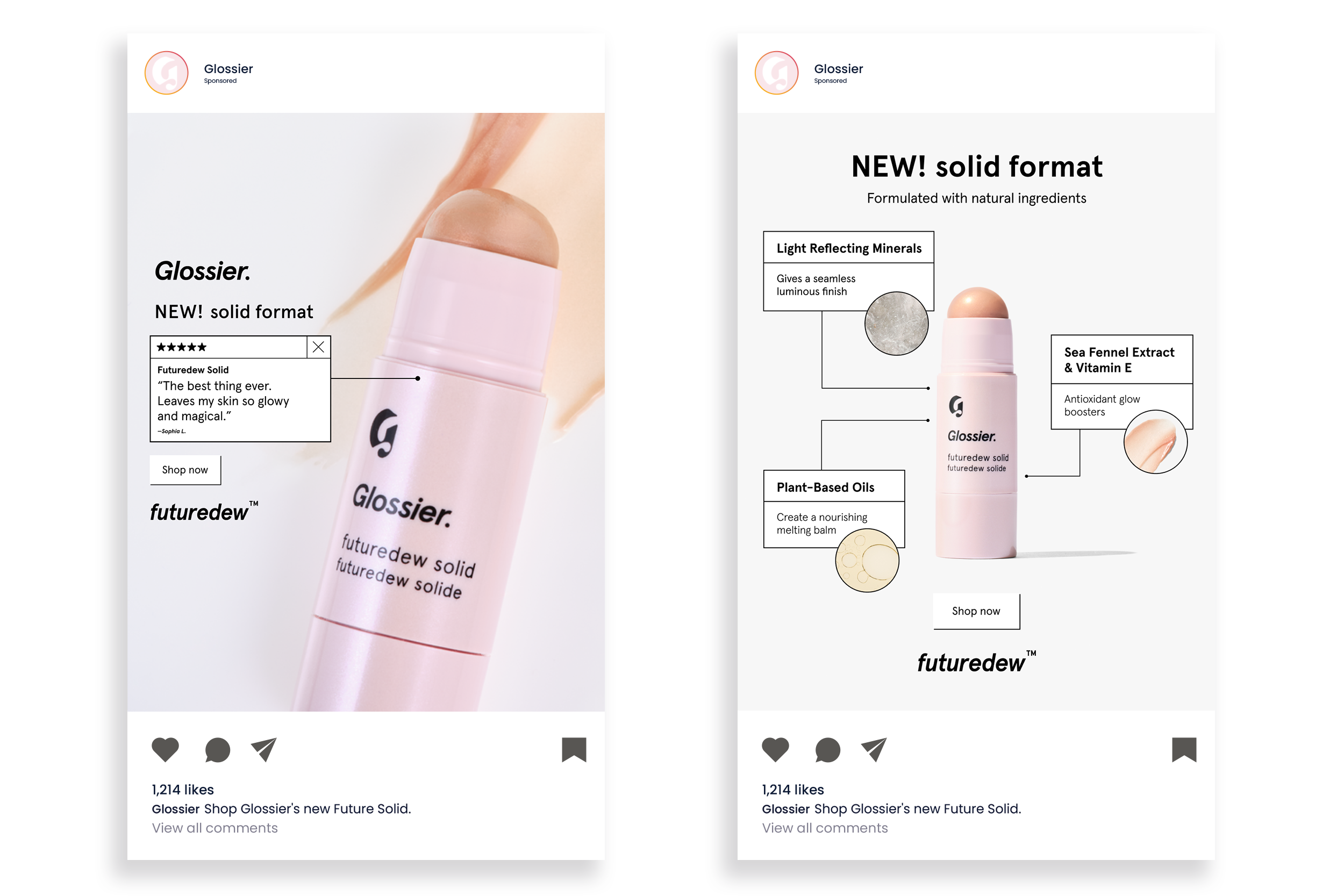 I am currently staffed on Glossier, with the partnership launching in November 2024. I am leading the partnership, owning creative strategy, prioritization, brief writing, as well as contributing to creative execution. This includes weekly and quarterly planning and presenting.